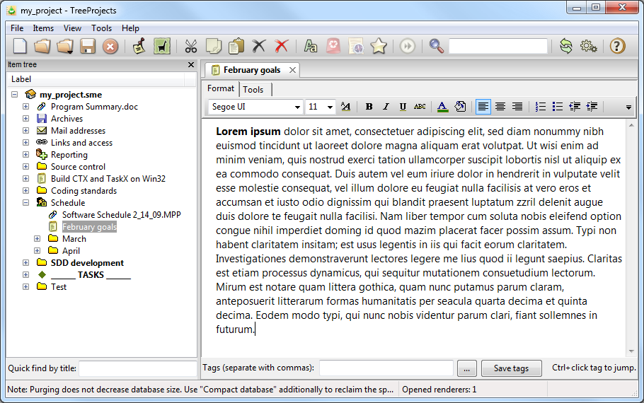 | capturing information from other programs using global key shortcuts (without switching to TreeProjects) (screenshot) | |